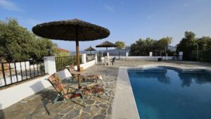 La zona exterior cuenta con un comedor cubierto y una zona de barbacoa, además de una piscina de 12 x 6 metros (de uso compartido). Las tumbonas y sombrillas le invitan a descansar o disfrutar de las impresionantes vistas.